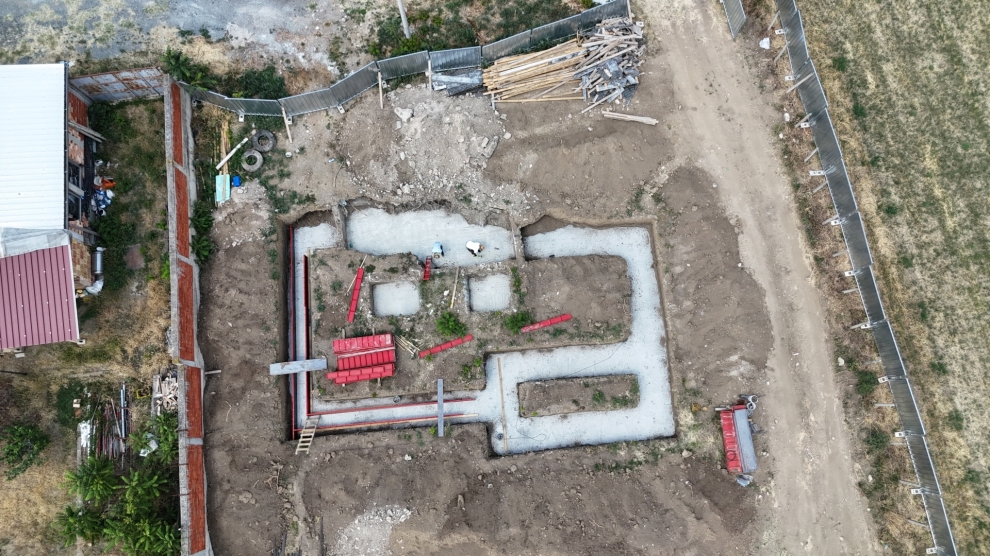 Изграждане на стоманобетонна носеща конструкция и тухлена зидария.